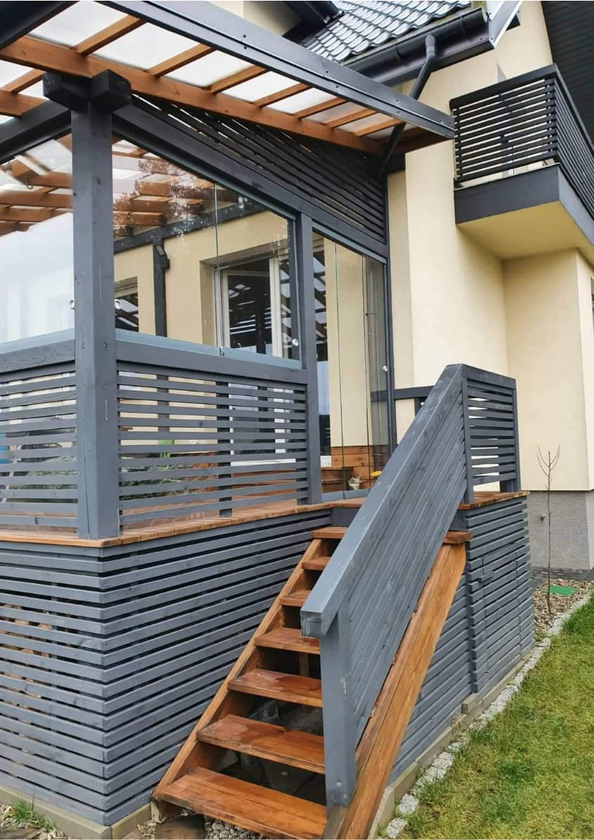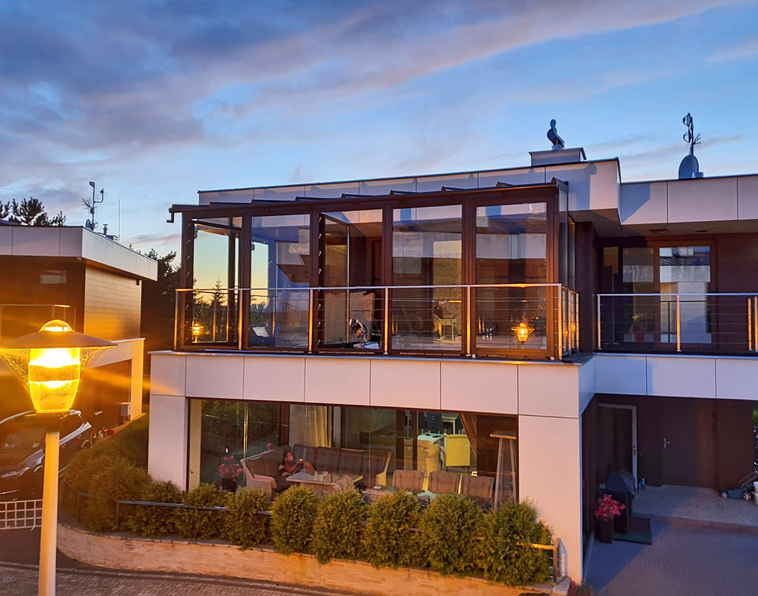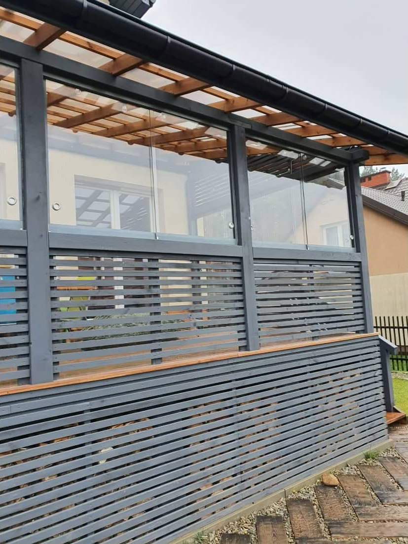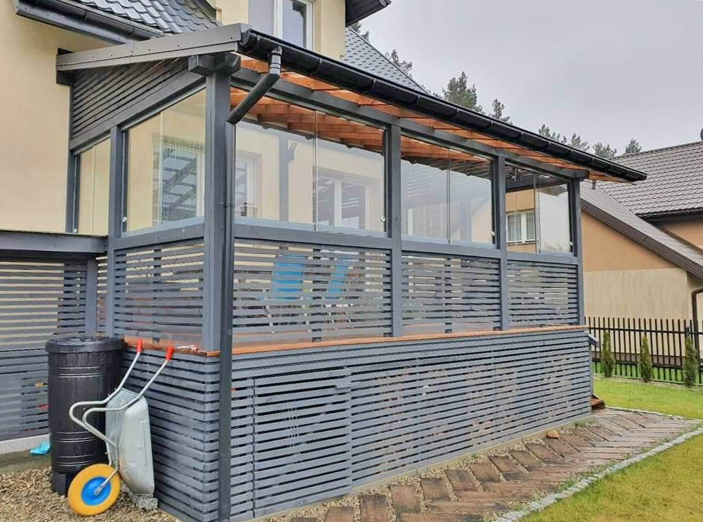 dangos tipas, pradedant visapusišku balkono ar lodžijos įrengimu viršutiniame aukšte, baigiant terasų, žiemos sodų dengimu ir baigiant mažais stogais virš įėjimo į biurus ar namai. Atsižvelgiant į